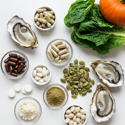 쏘팔메토와 함께 섭취할 경우 전립선 건강 유지에 시너지 효과를 낼 수 있어요. 아연은 전립선 조직에서 중요한 역할을 하며, 면역 기능과 남성호르몬 조절에도 도움이 돼요.