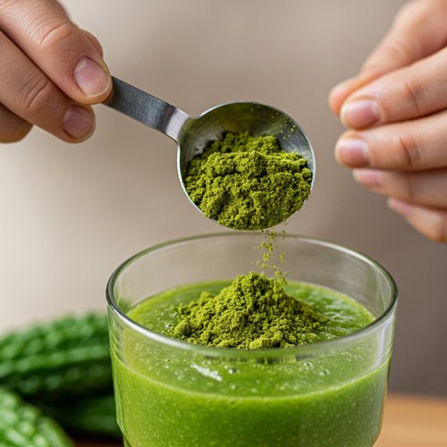 건조한 여주를 가루로 만든 것으로, 간편하게 물이나 요거트에 타서 먹을 수 있어요. 하루 1~2g 정도가 적당하며, 차처럼 우려 마셔도 좋아요.