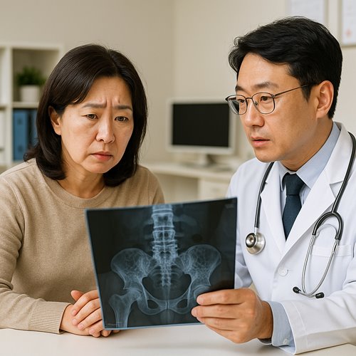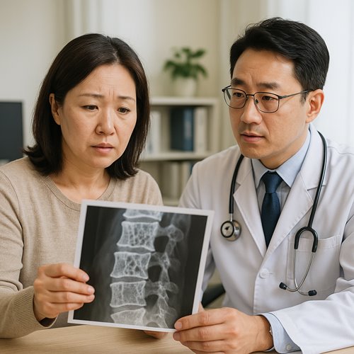• 대표 증상: 허리 통증, 키 감소, 구부정한 자세, 반복적 골절