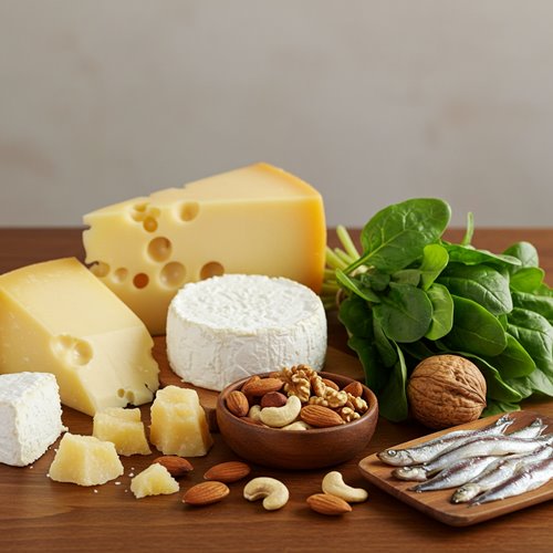 • 칼슘이 풍부한 식품: 우유, 요거트, 치즈, 멸치, 뱅어포, 두부 등은 칼슘 함량이 높아요.