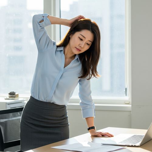 - 오래 앉아 있을 경우 1시간마다 일어나 가볍게 스트레칭을 해요.