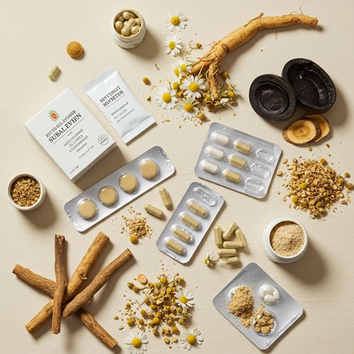 • 홍경천: 스트레스 완화, 피로 회복, 정신적 활력 강화.