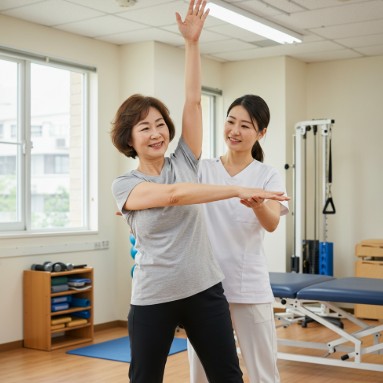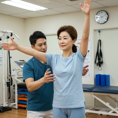 팔을 움직이지 않게 고정하고 관절의 안정성을 유지하기 위해 필요에 따라 팔걸이나 보조기를 사용할 수 있어요. - 통증 완화 이후 재활 운동 시작