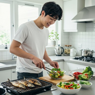 고등어, 연어, 호두, 아마씨유 등은 심혈관 건강을 지키고 동맥경화를 예방하는 데 도움이 돼요. - 위산 역류를 줄이는 저자극 식단