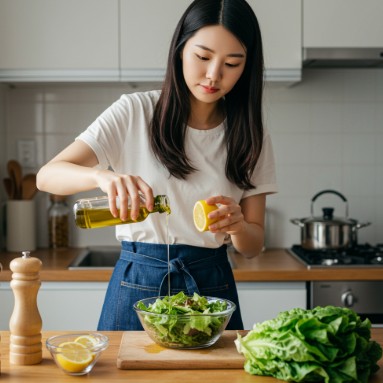 - 오일 드레싱을 소량 활용하면 지용성 비타민 A, K의 흡수율이 높아져요.