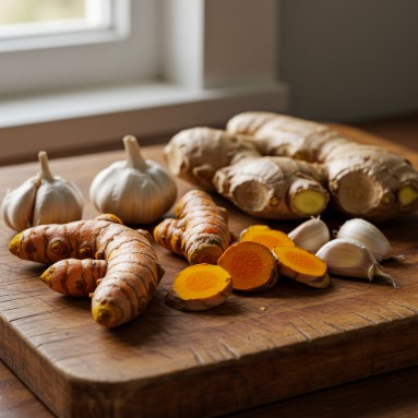 생강에는 진저롤(gingerol), 쇼가올(shogaol) 같은 생리활성 물질이 포함되어 있어 강력한 항염 작용을 해요. 면역세포의 과도한 활성화를 억제하고, 염증 매개체 생성을 줄이는 데 기여해요.