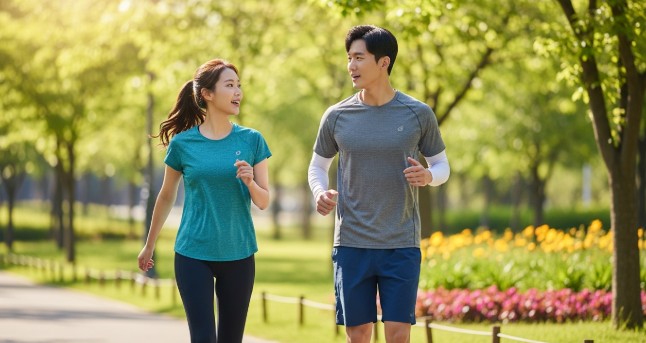 - 걷기, 자전거, 수영, 조깅 등 유산소 운동을 일주일에 150분 이상 실시해보세요.