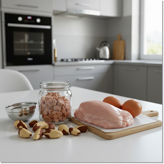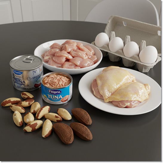 - 브라질너트, 달걀, 참치, 닭고기 등을 통해 자연적으로 섭취하는 것이 좋아요.