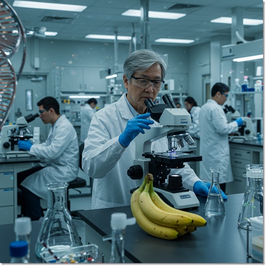 • 바나나는 씨가 없는 과일이라서 모두 같은 유전자를 가진 복제체 라고 해요.