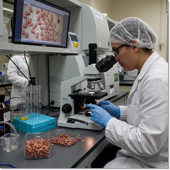 - 땅콩 저장 과정에서 곰팡이균(Aspergillus flavus)이 번식하면 아플라톡신이라는 발암 물질이 생성될 수 있어요.