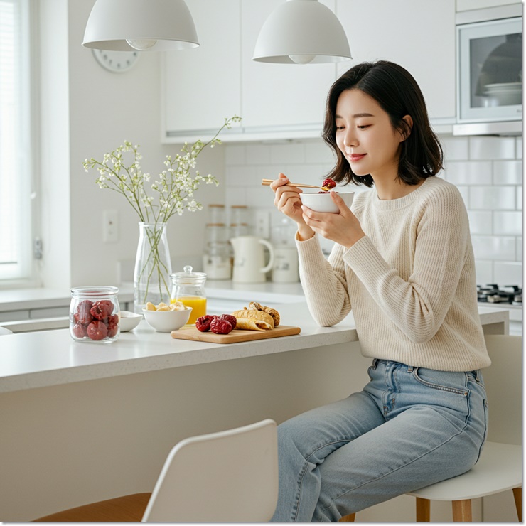 - 홍삼+대추차: 대추의 당분이 홍삼의 흡수를 돕고, 혈액 생성 효능을 강화시켜요.