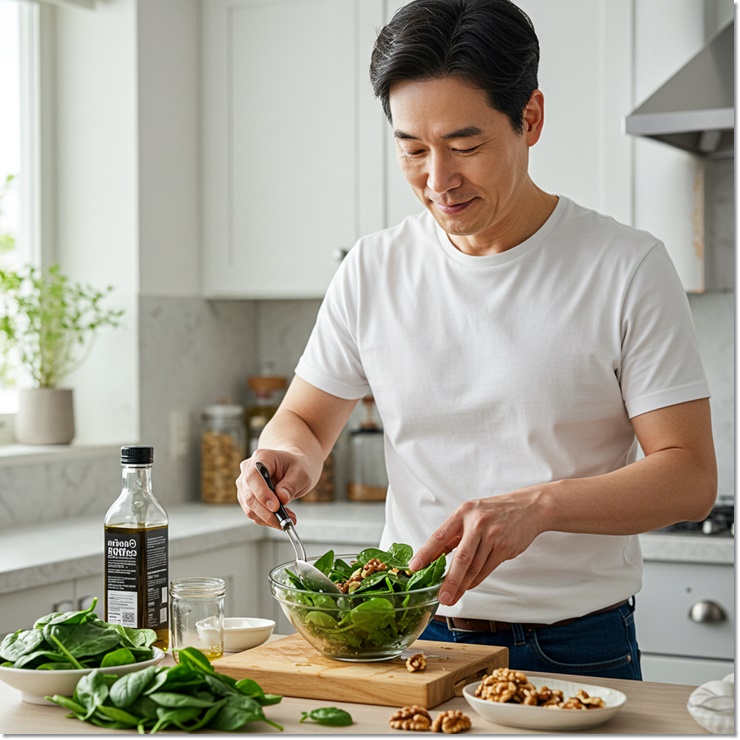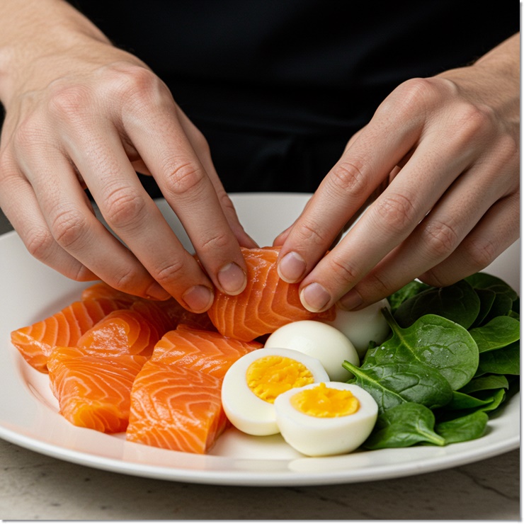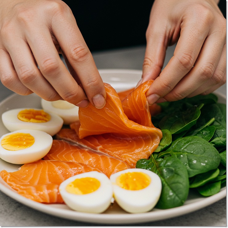 예를 들어 달걀 + 시금치 + 연어는 단백질, 철분, 오메가3까지 균형 있게 공급할 수 있어요.
