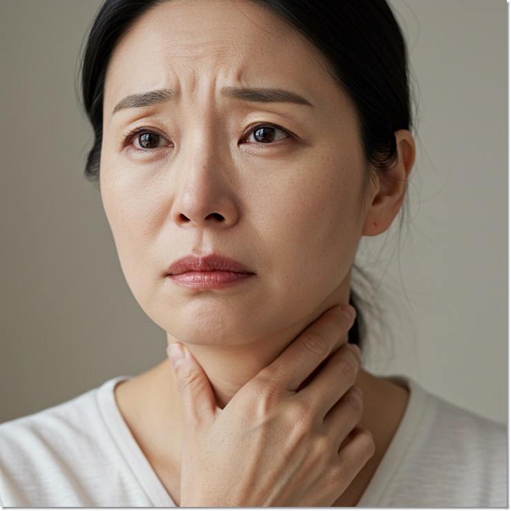 - 말을 할 때 목에 이물감이 들거나 소리가 잘 나오지 않아요.