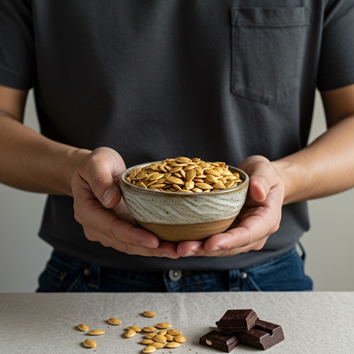 • 마그네슘이 풍부한 음식은 시금치, 아몬드, 다크초콜릿, 호박씨 등으로 다양하게 구성할 수 있어요.