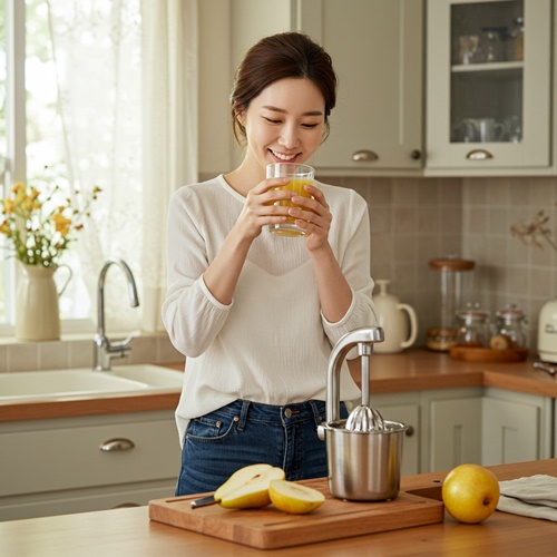 - 배즙: 진정 효과가 있어 목이 칼칼할 때 특히 좋아요.