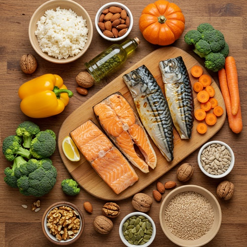- 오메가3가 풍부한 생선류 (연어, 고등어)